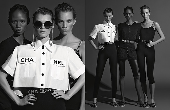 カール・ラガーフェルド撮影による、シャネルの2019年春夏 プレタポルテ コレクションのキャンペーンビジュアル。左から、クリス・グリカイテ、ノラ・アタル、アデスワ・アイゲウィ、ヒュンジ・シン。photo : KARL LAGERFELD