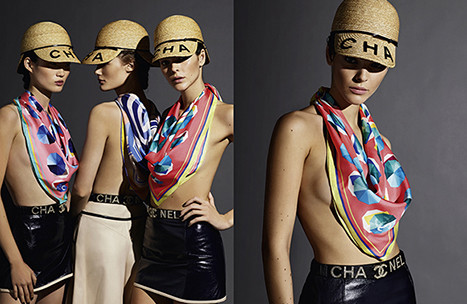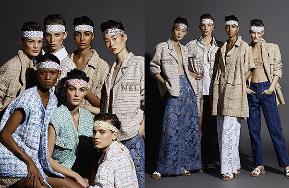 カール・ラガーフェルドが撮影した写真は、ブルーがかったグレーのシンプルな背景に、ライティングで表現した夏の日差しを彷彿させる強い陰影が際立っている。ゆったりとボディを包むツイードジャケットなどを羽織ったカットでは、リラックスしながらもエレガントな夏のスタイルを表現している。
