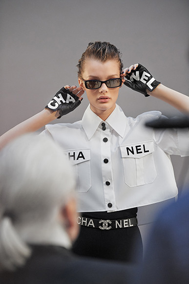 モノトーンのカットでモデルを務めたのはヴィットリア・チェレッティ。photo : KARL LAGERFELD