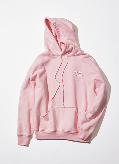 ドローコードからロゴ刺繍までガーリーなピンク一色。肘パッド付きパーカ¥52,920/クレージュ(エドストローム オフィス)