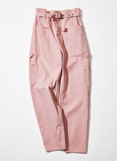 ハイウエストでゆったりとした80sシルエット。随所に赤いステッチ入り。ワークパンツ¥90,720/イザベル マラン