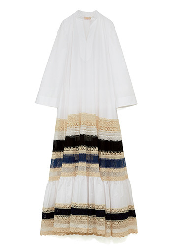 たっぷりとしたAラインのオープンカラーのシャツドレス。レースで切り替えたボヘミアンな一枚。¥262,440/トリー バーチ(トリー バーチ ジャパン)