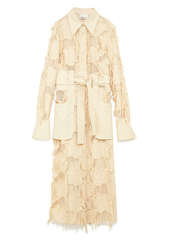 繊細なチュールに切りっぱなしの地厚な生地をコラージュした、クラフト感あふれるワークシャツのドレス¥170,640(予定価格)/3.1 フィリップ リム(3.1 フィリップ リム ジャパン)