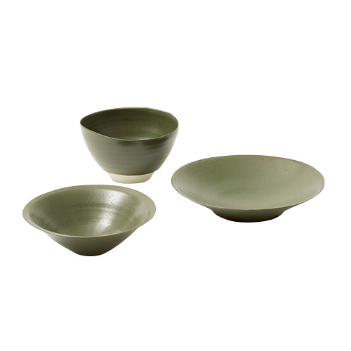 黒と白のうつわで知られる気鋭の陶芸家、吉田直嗣にグリーンをオーダー。うつわ¥4,320〜/以上ビオトープ