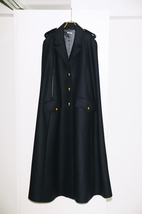 肩章や金ボタンがあしらわれ、ミリタリーシックな雰囲気が魅力的。ケープ¥495,720(予定価格)/ミュウミュウ(ミュウミュウ クライアントサービス)