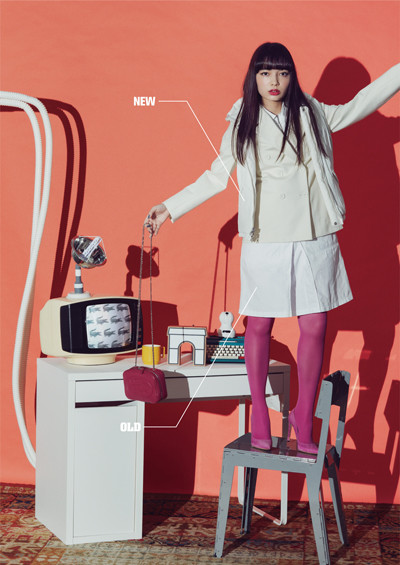 女性の社会が進んだ80年代に流行した言葉「パワードレッシング」をキーワードに新旧ミックスコーディネート。現代風に気取らないエレガンスを表現してアレンジ。新作のアウター¥30,240