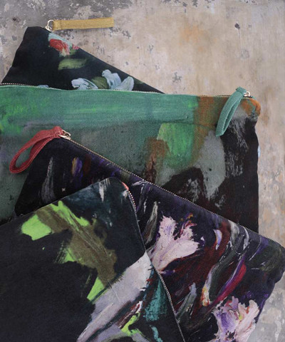 ガエル・ダヴランシュの絵画がプリントされたベルベットのポーチ各¥37,800