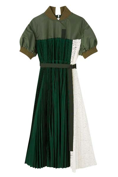 MA-1とプリーツドレスをミックスし、強く美しいエレガンスを発信。ワンピース¥106,700/サカイ(バーニーズ ニューヨーク カスタマーセンター)