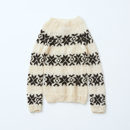 まるでハートが連なっているかのような、ロマンティックなノルディック柄にひと目惚れ。すとんと落ちるロングスカートで女らしく纏って。ニット¥33,000/バトナー(ユナイテッドアローズ 青山 ウィメンズストア)