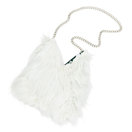 定番の「ジャパニーズ」バッグを毛足の長いエコファーで仕立て、チェーンストラップをあしらった新作。ショルダーバッグ( H38×W33㎝)¥65,880/エムエム6 メゾン マルジェラ(エムエム6 メゾン マルジェラ オモテサンドウ)