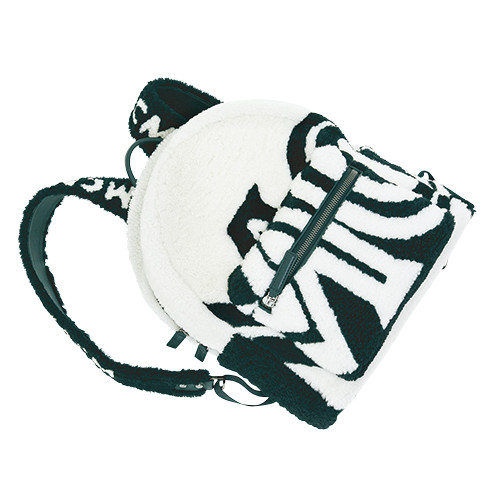 ツートーンのシアリングでロゴをアピール。バックパック「コントラスト ロゴ シアリング」(H37.5×W30×D14.5㎝)¥288,360/エムシーエム(エムシーエム 銀座 ハウス1)