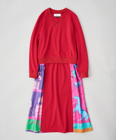 Vネック長袖プルオーバーコンビワンピース¥41,800