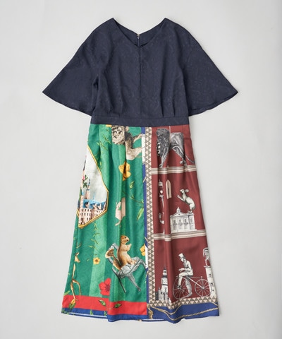 スカーフプリント半袖ワンピース¥37,400
