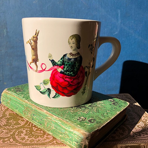 M!DOR!の今回のエキシビションでは、作品とともにグッズも販売。マグカップ¥3,080