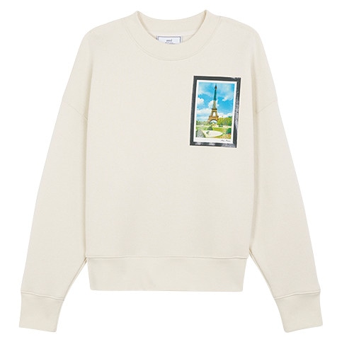 大好きなパリの象徴、エッフェル塔のポストカードモチーフを胸に。スウェット¥44,000/アミアレクサンドル マテュッシ(アミ オモテサンドウ)