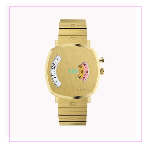 時計「『グリップ』 ルーレット」(イエローゴールドPVD、クオーツ、H38×W38mm)¥264,000/グッチ