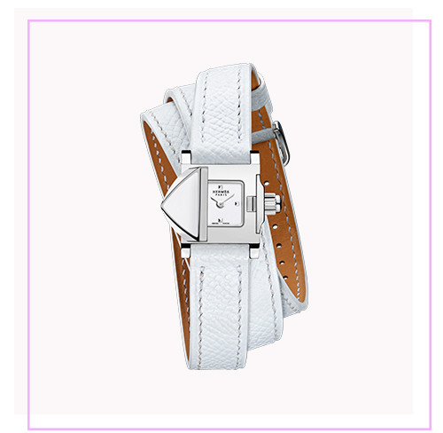 時計「メドール・ロック」(ステンレススチール×ホワイトラッカー、カーフストラップ、クオーツ、H16×W16mm)¥451,000/エルメス