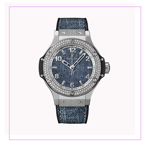 時計「ビッグ・バン ジーンズ ダイヤモンド」(ダイヤモンド×ステンレススチール、ブルージーンズ×ブラックラバーストラップ、クオーツ、φ38mm、日本限定)¥1,221,000/ウブロ(LVMHウォッチ・ジュエリー ジャパン ウブロ)