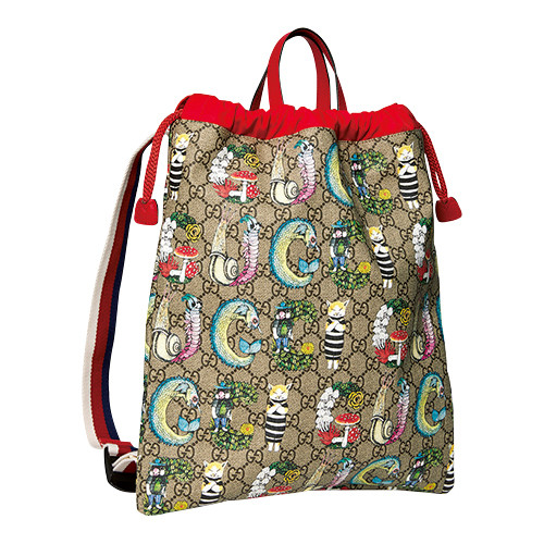 ネコやキノコがグッチのロゴに変身し、アイコニックな「GGスプリーム キャンバス」と融合。ドローストリングバッグ(H39×W33×D3㎝)¥72,600/グッチ(グッチ ジャパン)