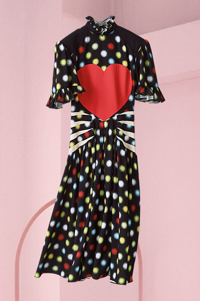 レトロなカラフルドットに真っ赤なハート。60年代に「アンファンテリブル」と呼ばれた元祖パコ ラバンヌのムードが漂う。¥160,160/パコ ラバンヌ(エドストローム オフィス)