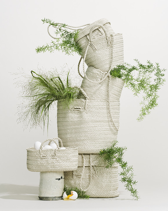 一見伝統的なマルシェかごのようで、実はカウレザーを編み込んだバスケット。貼り合わせた革を使用することで内側までも美しく、使い込むほどに独特の風合いが増すのが魅力。