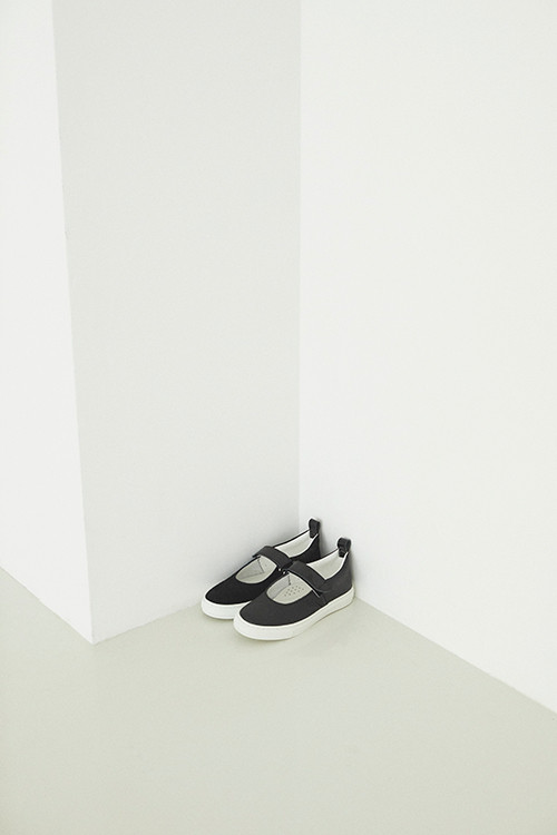 何足か色柄違いで持っている、ワードローブのなかで唯一のワンストラップシューズ。単純に履きやすくて、異素材の組み合わせ方が魅力です」。シューズ(ドーバー ストリート マーケットギンザ限定)¥22,000/バディ(ドーバー ストリート マーケット ギンザ)