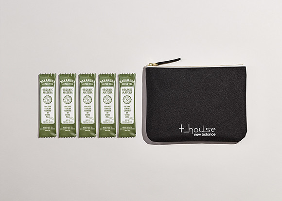静岡県藤枝に100年続く茶農家で、東京・蔵前に店を構える日本茶ブランド「NAKAMURA」とティーハウス ニューバランスのコラボレーションによるストアオリジナルアイテム。付属のポーチは、ペットボトルのリサイクル素材REPREVEを使用したオリジナル品。「T-HOUSE × NAKAMURA TEA LIFE STORE」抹茶スティック&ポーチセット¥2,200