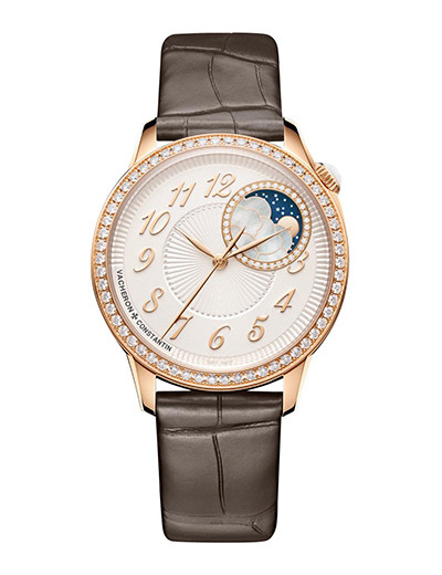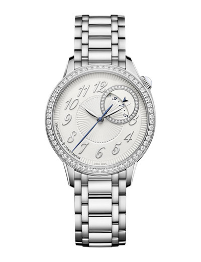 ヴァシュロン・コンスタンタンから登場した、レディスだけのコレクション「エジェリー」。とびきりフェミニンなミューズたちは、オートオルロジュエリー(高級時計)とオートクチュールの世界が融合して誕生した。文字盤にはドレスのプリーツのような繊細な質感のギヨシェ掘りパターン。サブダイヤルとリューズを1時と2時の間に置いて、ブランドのデザインコードも継承する。