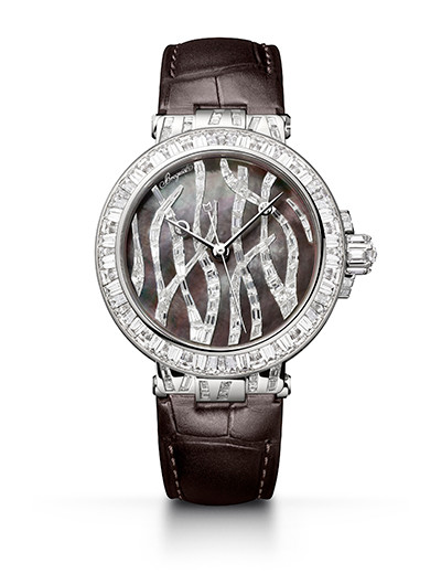 「マリーン ハイジュエリー 9509 ポセイドニア」のモチーフは、地中海の海底に生息する水生植物ポシドニア・オセアニカ。ダイヤルにタヒチ産マザー・オブ・パールのマルケトリ(=寄木細工)と85個のバゲットカット・ダイヤモンドのインビジブルセッティングを駆使した。海の神秘を優美に描き出す、圧巻のジュエリーウォッチ。