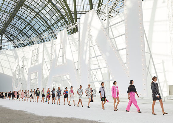ショーのフィナーレ。真っ白の背景にシャネルの最新コレクションが映える。 ©CHANEL