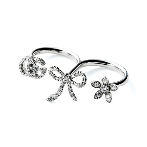 3つのモチーフが輝く、ホワイトゴールド。¥844,800/グッチ(グッチ ジャパン)