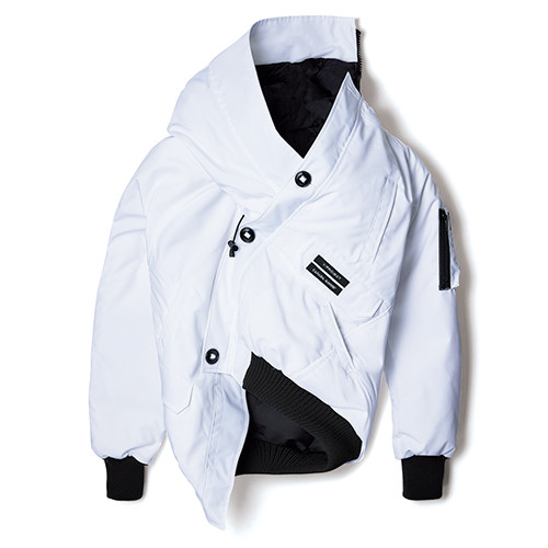人気の「チリワックボンバー」が、ボタンをかけ違えたような変形シルエットに。各¥209,000/ワイプロジェクト × カナダグース(ザ・ウォール PR)