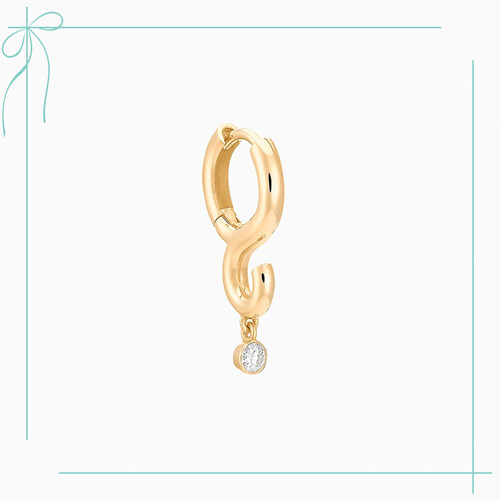 一粒のダイヤモンドがそっとデザインされたピアスは片耳用。小ぶりながらもさり気なく存在感を発揮し、コーディネートをモダンに仕上げる。