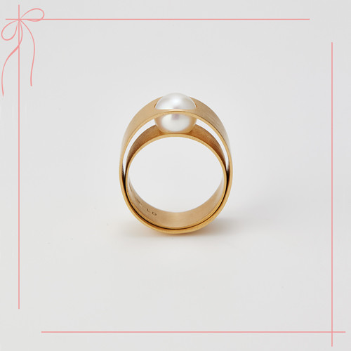 二重になったリングから突き出るように配されたパール。身に着ける自分だけの秘密のように、トップとサイドで異なる見え方を堪能したい。