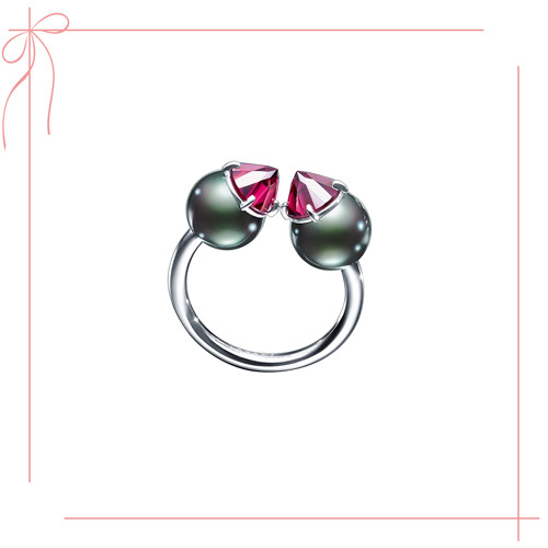 リング「リファインド リベリオン シグネチャー リング」(ホワイトゴールド×南洋真珠 黒蝶×ガーネット)¥377,300(11月現在)/TASAKI