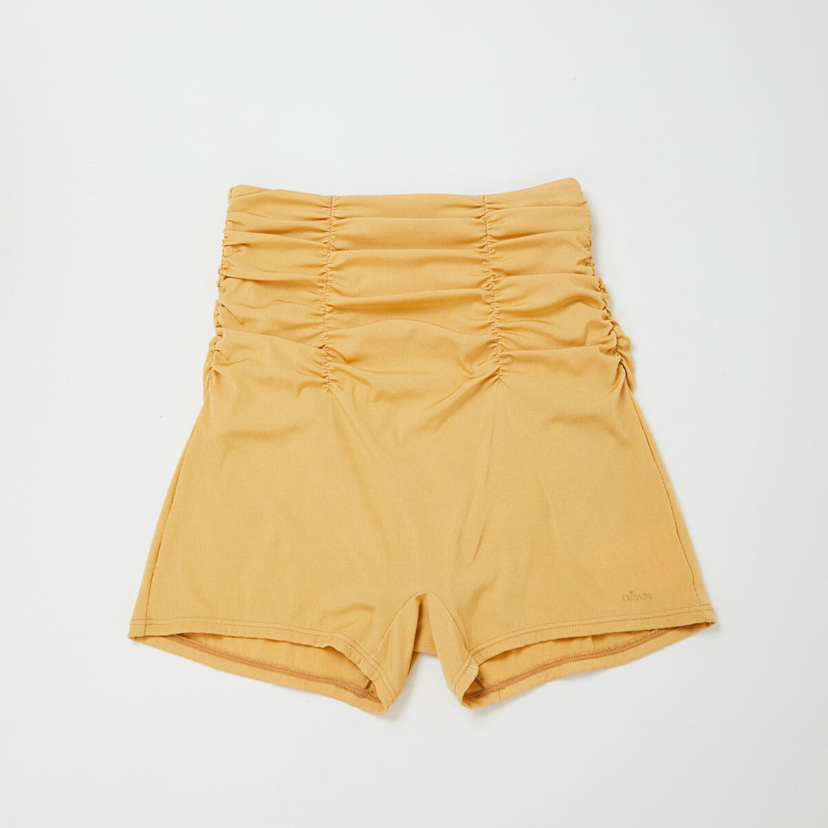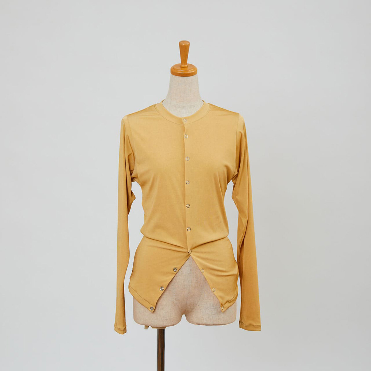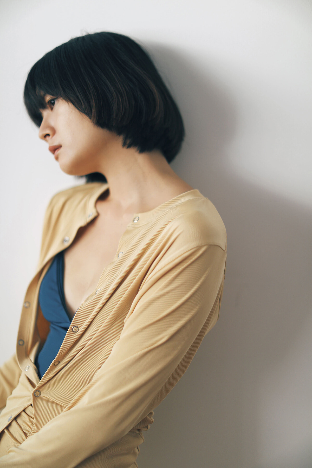 写真上から スナップボタンカーディガン¥15,400、ショートブルマ¥13,200、中に着たカップ付きキャミソール¥9,900/以上ダン