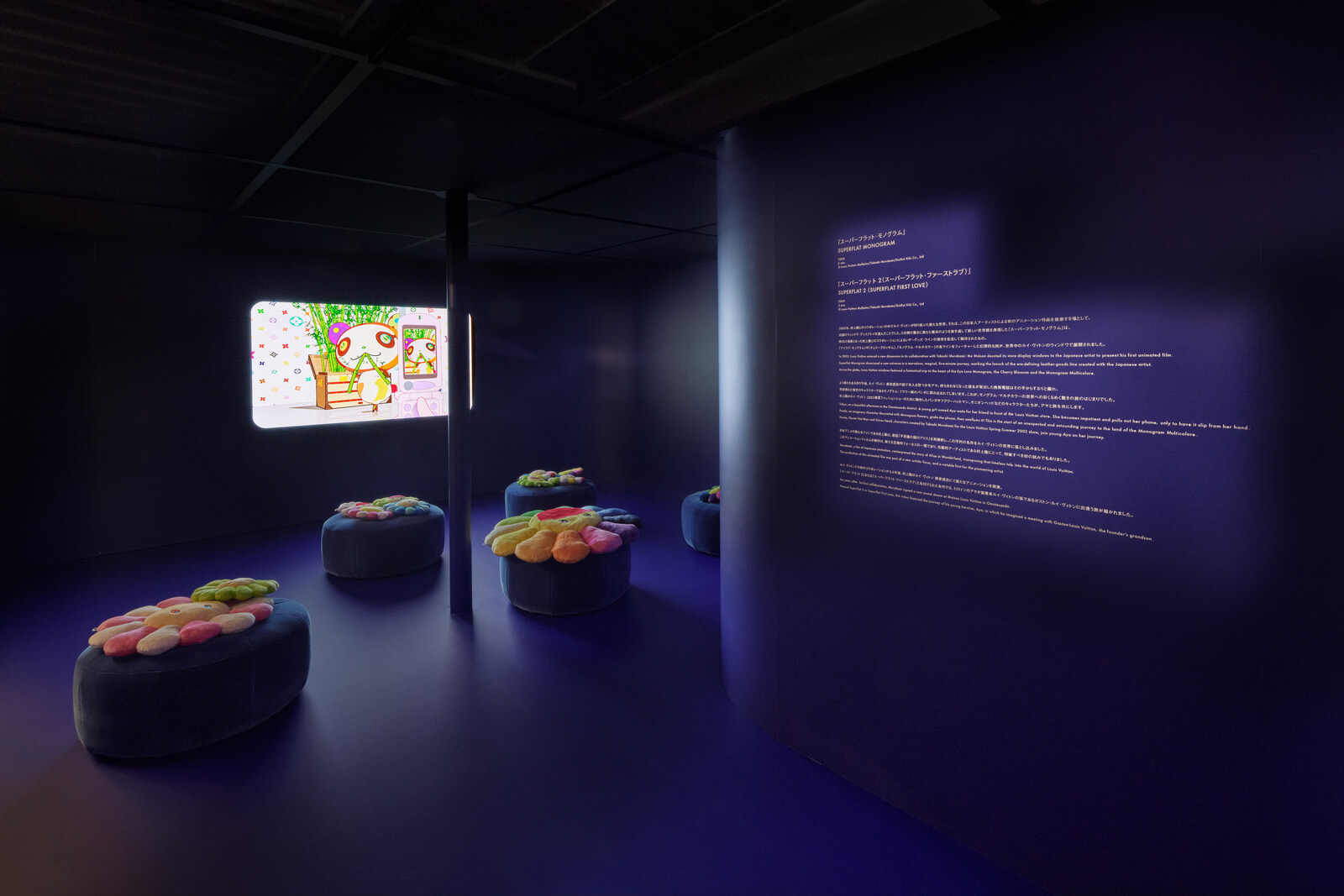開催される東京、ニューヨーク、ロンドン、ミラノ、ソウル、上海、シンガポールの7都市の中でも最大規模を誇る東京のポップアップストアは、カラフルでダイナミックなデザインのファサードが目印。足を踏み入れると、フラワークッションが置かれた椅子があるシネマ・スペースや「ルイ・ヴィトン × 村上隆」コレクションを熟練した職人がペイントでケアするの様子を見ることができるケアステーションなど、多角的なクリエイティブティにあふれた空間を堪能することができる。
