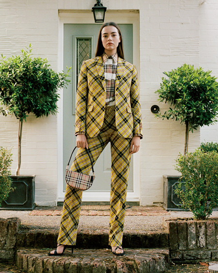 ハウスコードをあらためて見つめ直した今季のバーバリー。異なる格子のパターンをスーツやシャツ、バッグで掛け合わせて。