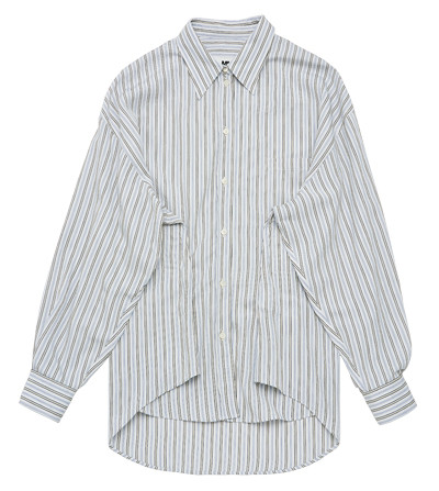 エクストララージなシャツの、両サイドのフロントにあしらったベルクロテープを留めることでフォルムが変わる。
