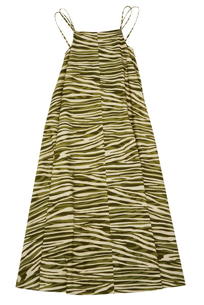 ボタニカルな色のゼブラプリントやコード状のダブルストラップなど、さりげないひねりを利かせて。