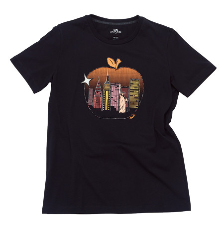 ニューヨークを象徴するアップルとスカイラインのプリントにビーズ刺繍をオン。