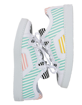 スポーティでありながら、甲にあしらったベルトでほんのりフェミニンな雰囲気。