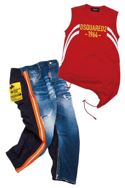 ノースリーブトップ¥49,500、パンツ¥118,800/ともにディースクエアード