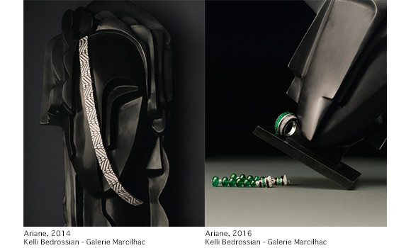 Galerie Marcilhacのアート作品とともに撮影された、ハイジュエリーコレクション「ヒストリー オブ スタイル、アールデコ」。