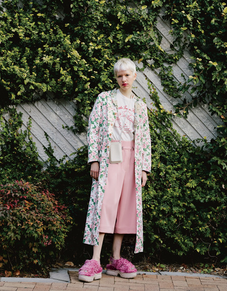 チェスタージャケット¥52,800/ヤエカ ライト(ヤエカ) Tシャツ¥13,200/アンダーカバー キュロットパンツ¥72,600/3.1フィリップ リム(3.1 フィリップ リムジャパン) サンダル¥19,800(3月上旬発売)/アグ®(デッカーズジャパン) フォンケース¥19,800/フォート(ハルミ ショールーム)