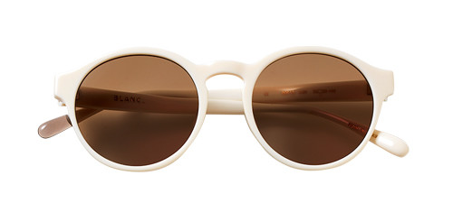 乳白色のフレームと薄めのレンズカラーが洗練された印象の一本は、アイウエアの名産地、鯖江で作られた本格派。サングラス¥27,500/ブラン(ブリンク ベース)