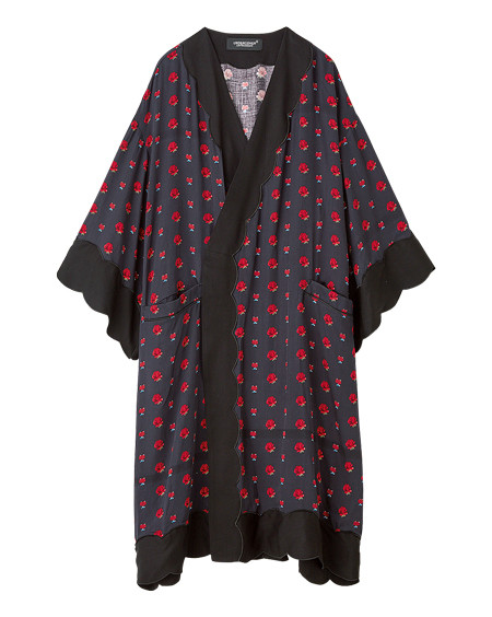 バラ柄のコートで、部屋着をブラッシュアップ。