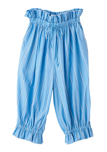 ウエストと裾をフリル状にアレンジして、ガウチョパンツをガーリーに。パンツ¥41,800/ミキオサカベ