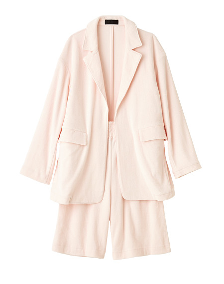 ジャケットとショートパンツのセットアップを、包まれるような肌心地のパイル素材で。ジャケット¥29,700、ショーツ¥19,800/ともにオルウェル(グラストンベリーショールーム)