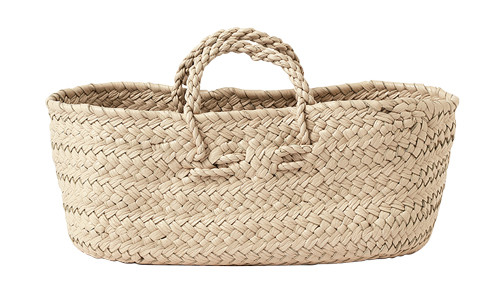 カウレザーを籠状に編み込んだバスケットバッグ。財布とスマートフォンがちょうど納まるミニサイズ。バッグ(H23×W10.5×D13.5㎝)¥30,800/アエタ(アルファ PR)